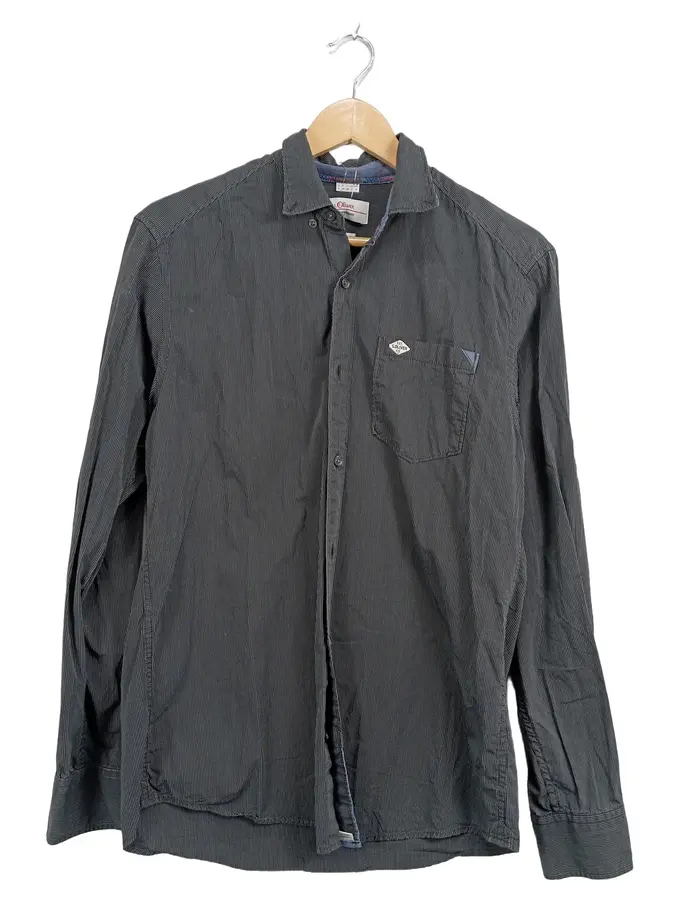 Herren Freizeithemd Langarm gestreift Gr. S Regular Fit Grau