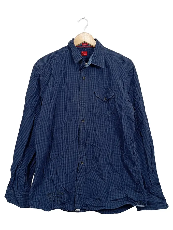 Herren Freizeithemd Langarm Kariert Blau Größe L