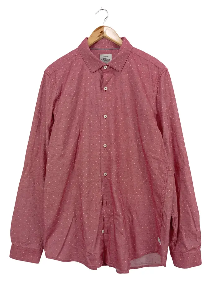 Herren Freizeithemd Langarm Rot Gepunktet XL Casual