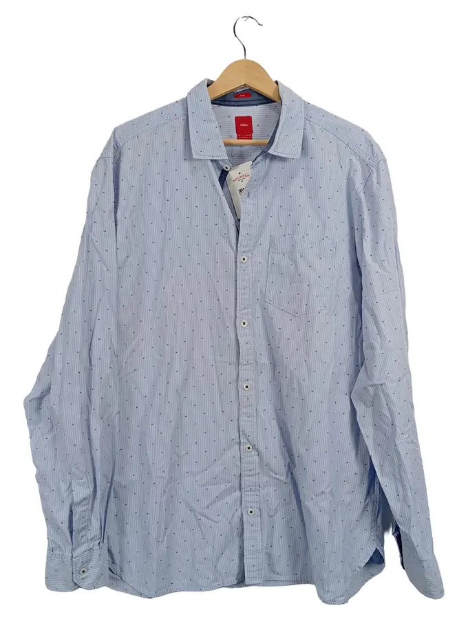 Herren Freizeithemd Langarm Slim Fit Blau Gr. XL Baumwolle