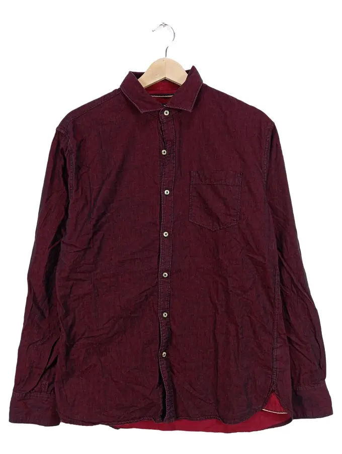 Herren Freizeithemd Langarm Uni Rot Baumwolle Gr. L