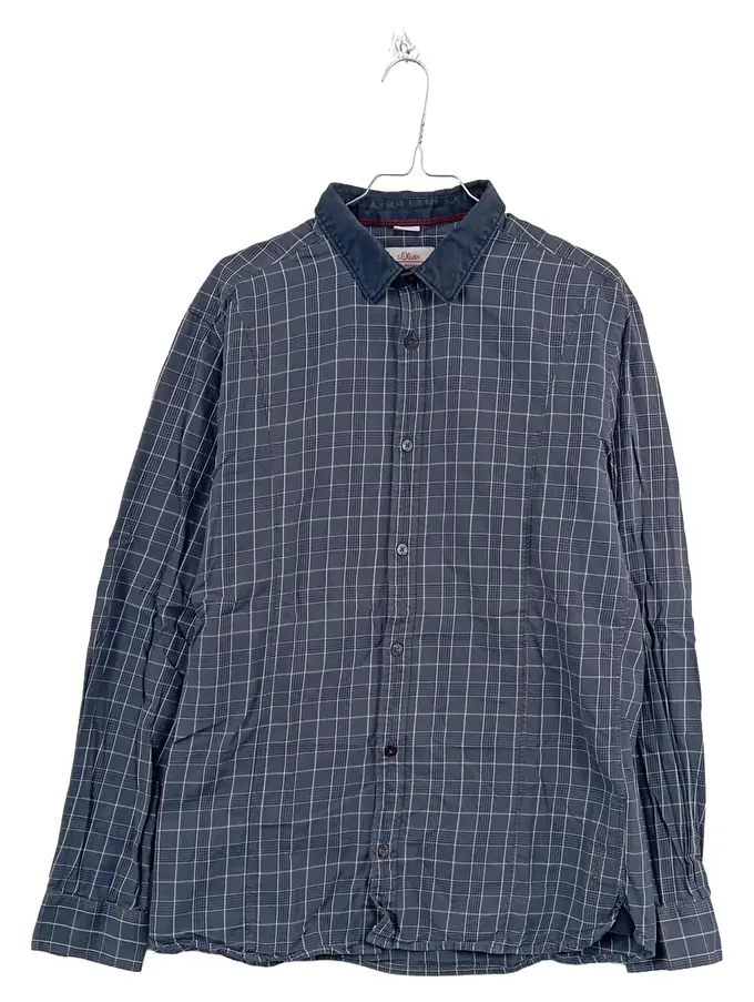 Herren Freizeithemd Slim Fit Kariert Blau Gr. L Baumwolle