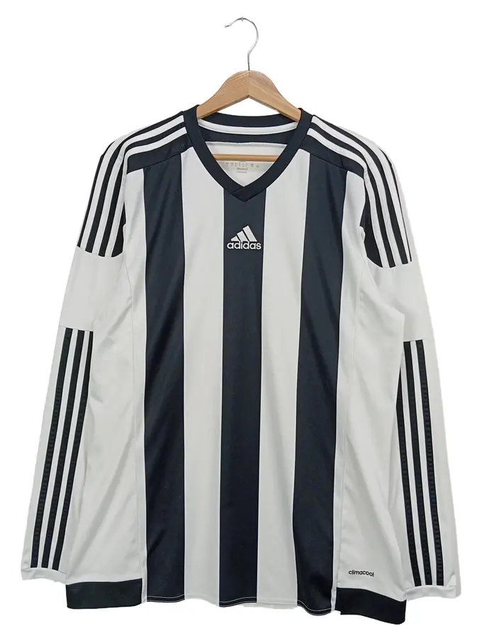 Herren Fußball Trikot Langarm Gr. 50/L Schwarz Gestreift Climacool