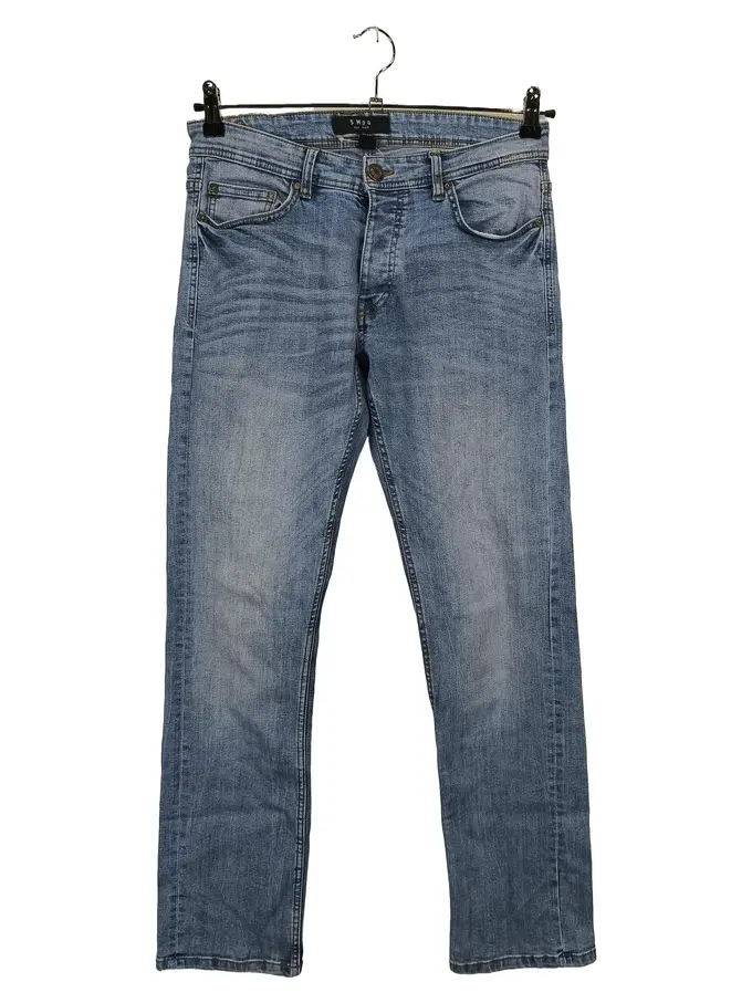 Herren Jeans Regular Fit Blau W30/46/S Knopf Lederdetails