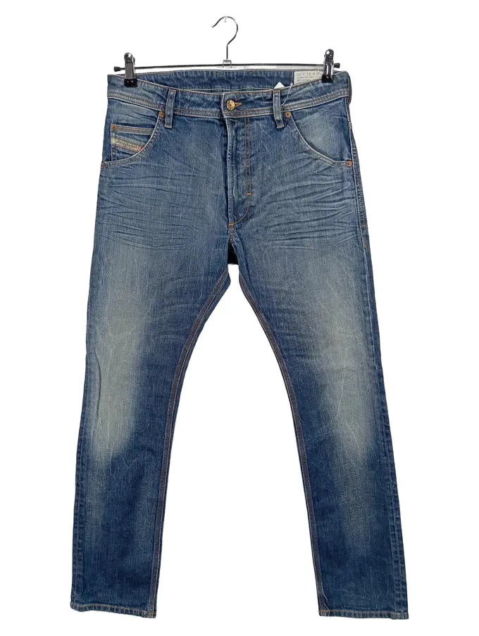 Herren Jeans Regular Fit W31/L32 Blau Denim Used Look