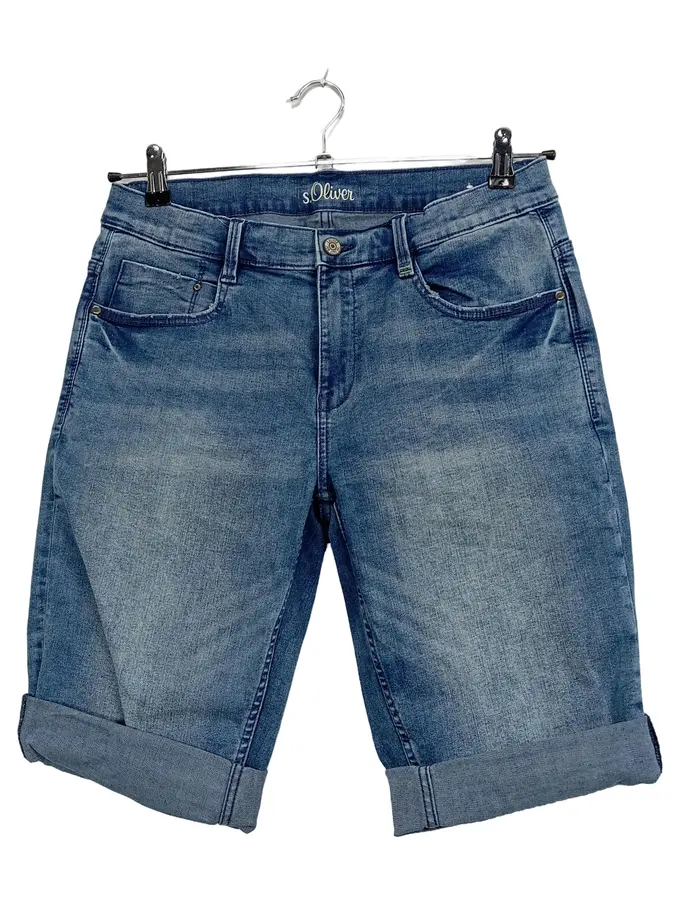 Herren Jeans Shorts Bermuda W40 Blau Used-Look Stretch