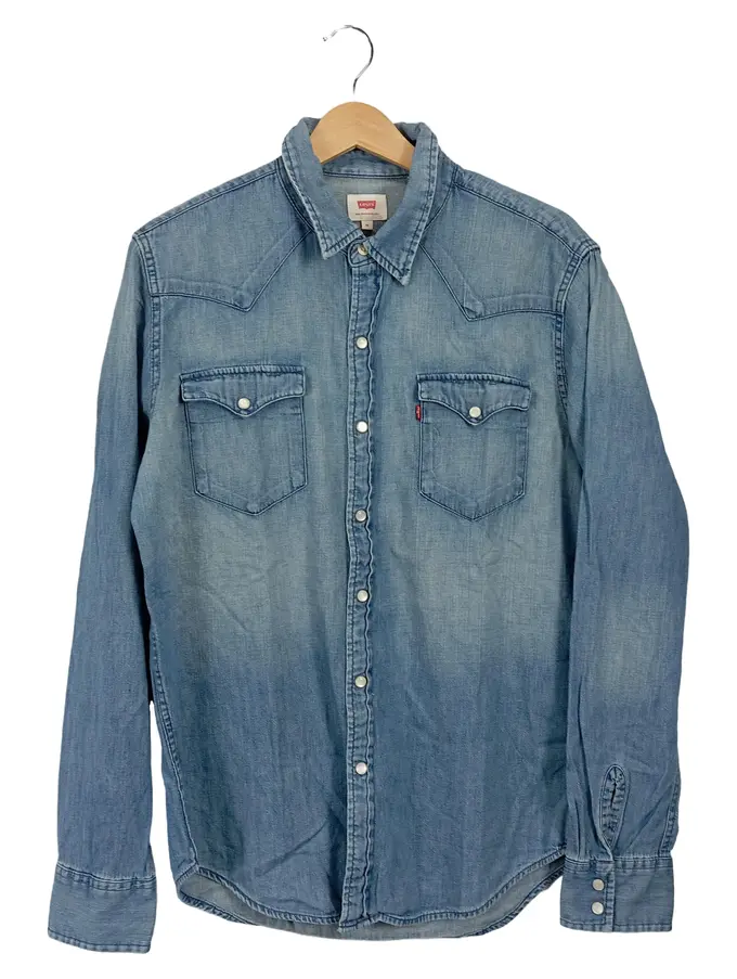 Herren Jeanshemd Freizeithemd Blau Gr. M Baumwolle