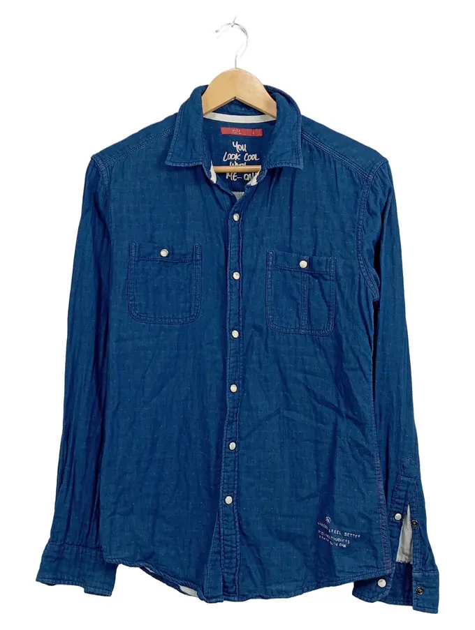 Herren Jeanshemd Freizeithemd Gr. S Blau Langarm