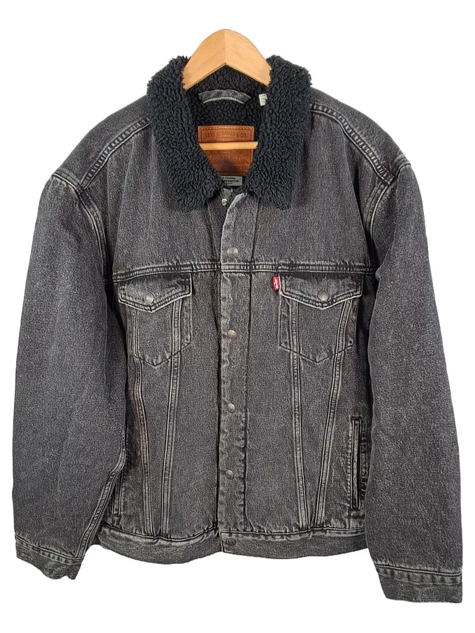 Herren Jeansjacke Sherpa Kragen Grau Größe XXL Trucker Premium
