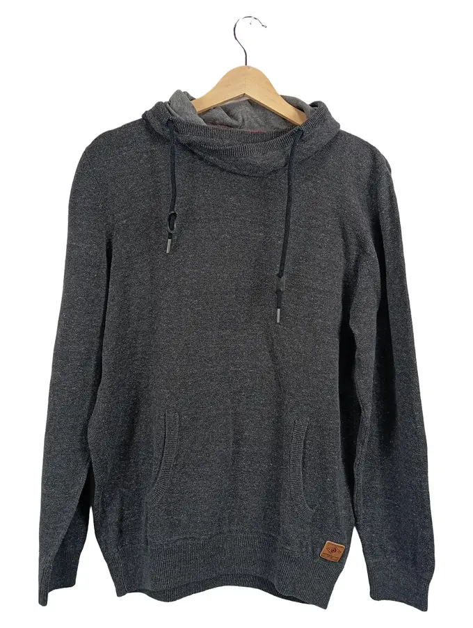 Herren Kapuzenpullover Gr. L Grau Meliert Stehkragen Kordelzug