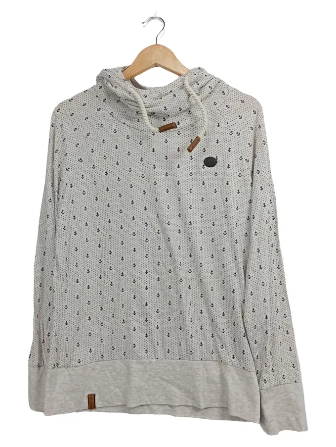 Herren Kapuzenpullover Hoodie Beige Anker Muster Gr. 52/XL