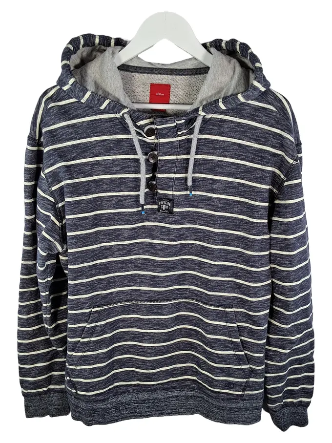 Herren Kapuzenpullover Hoodie Gestreift Blau Gr. XL