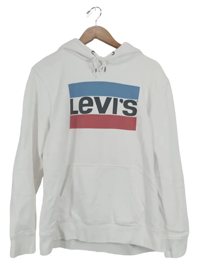 Herren Kapuzenpullover Hoodie Gr. 50/L Weiß Logo-Print Freizeit