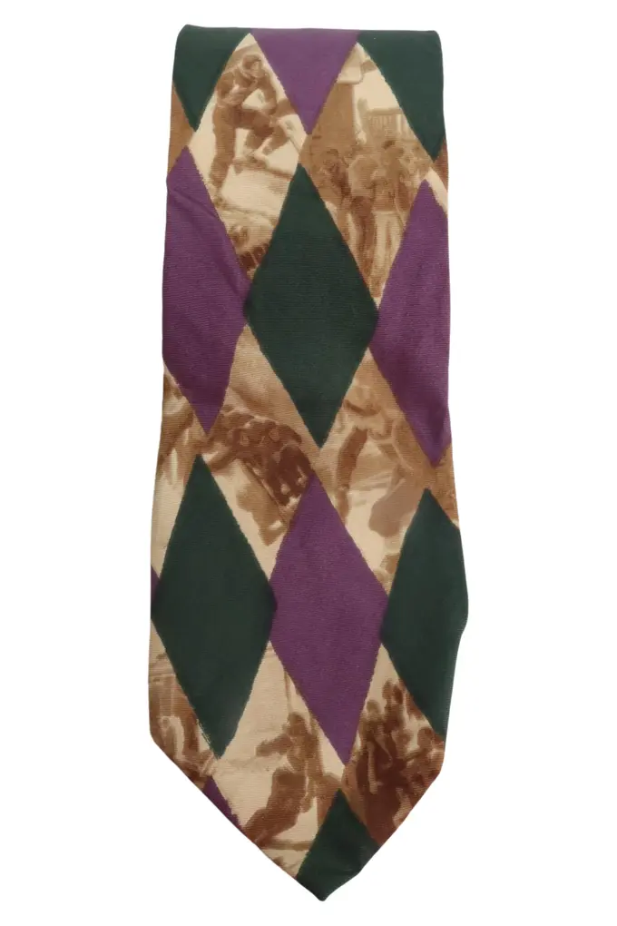 Herren Krawatte Seide Rauten Muster Grün Lila Beige Elegant