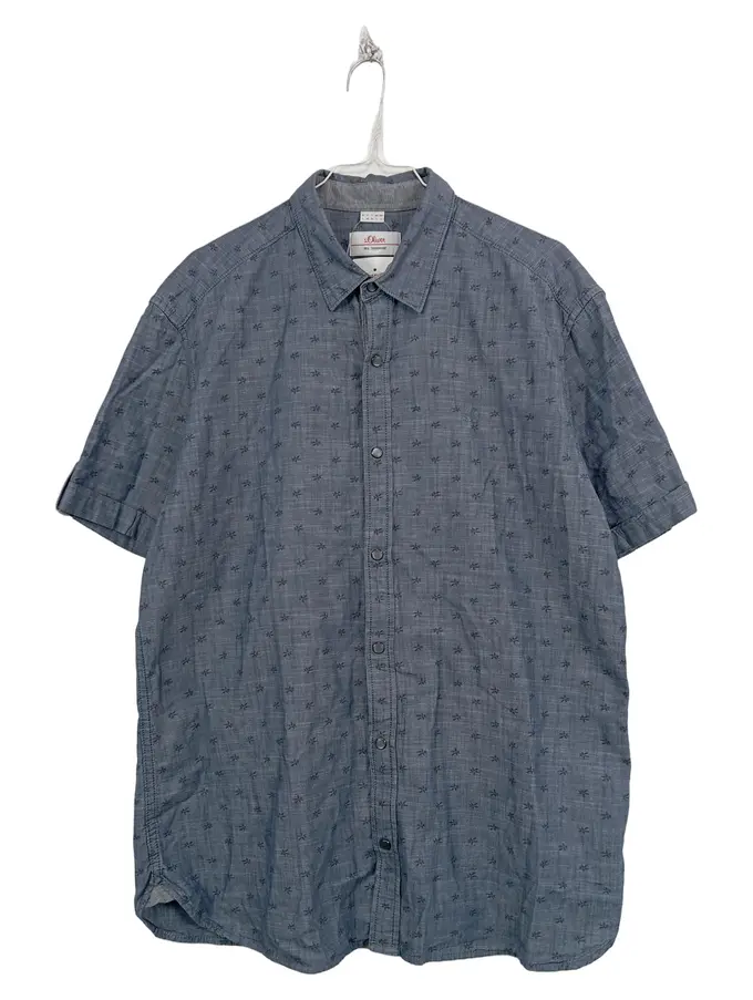 Herren Kurzarm Hemd Gr. L Blau Palmen Muster Regular Fit Baumwolle