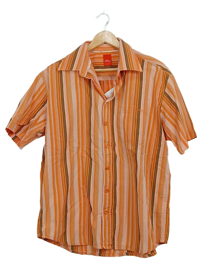 Herren Kurzarmhemd Gr. L gestreift orange Retro Freizeithemd