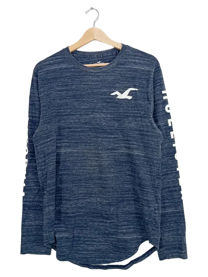 Herren Langarmshirt Blau M Casual Baumwolle Logo
