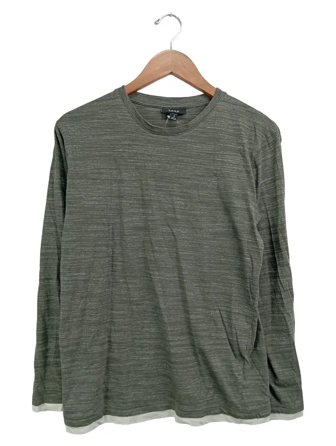 Herren Langarmshirt Gr. 46/S Grün Melierter Baumwolle Casual Basic