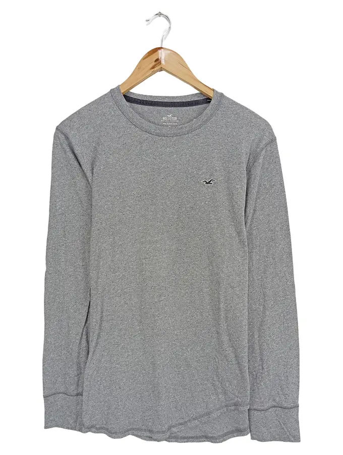 Herren Langarmshirt Gr. M Grau Meliert Logo Baumwolle Casual