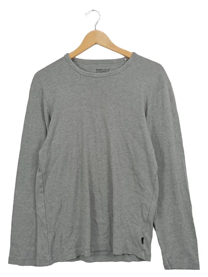 Herren Langarmshirt Grau Basic Gr. L Baumwolle