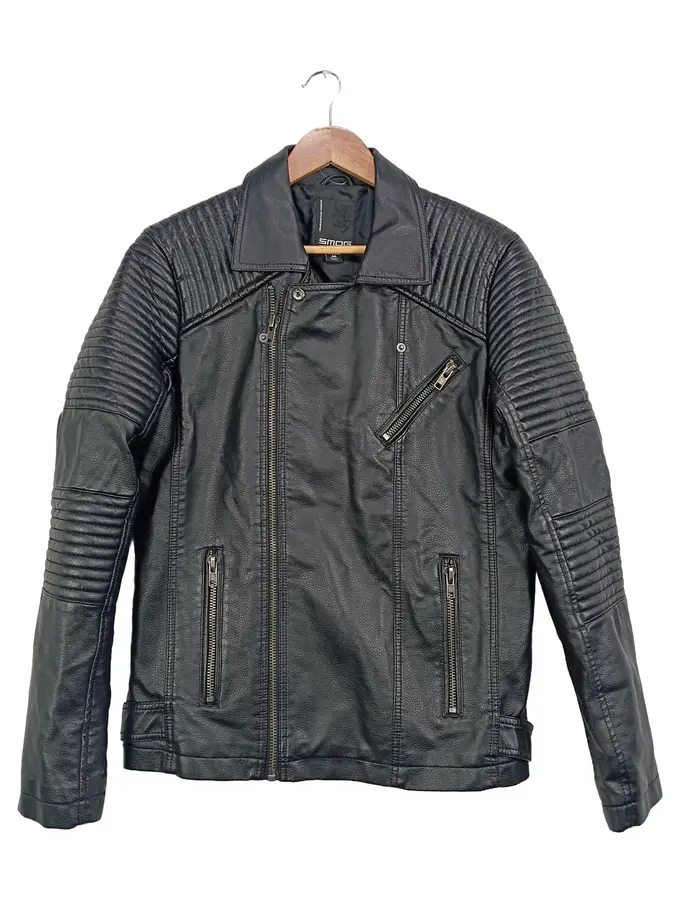 Herren Lederjacke Schwarz Gr. M Biker Jacke Urban Kunstleder
