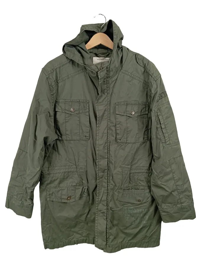 Herren Parka Jacke Kapuze Oliv Baumwolle Gr. XL