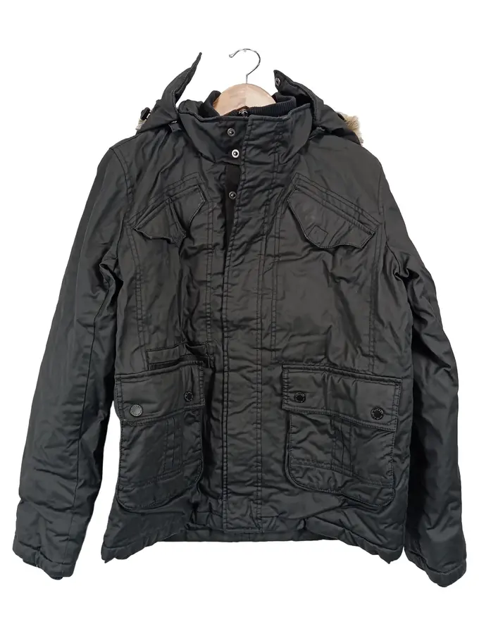 Herren Parka Kapuze Schwarz Gr. 48/M Freizeit Polyester