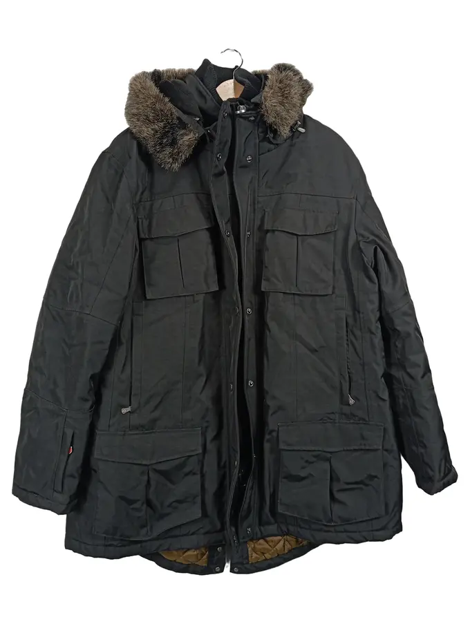 Herren Parka Winterjacke Kapuze Fellbesatz Schwarz Gr. 54 XXL