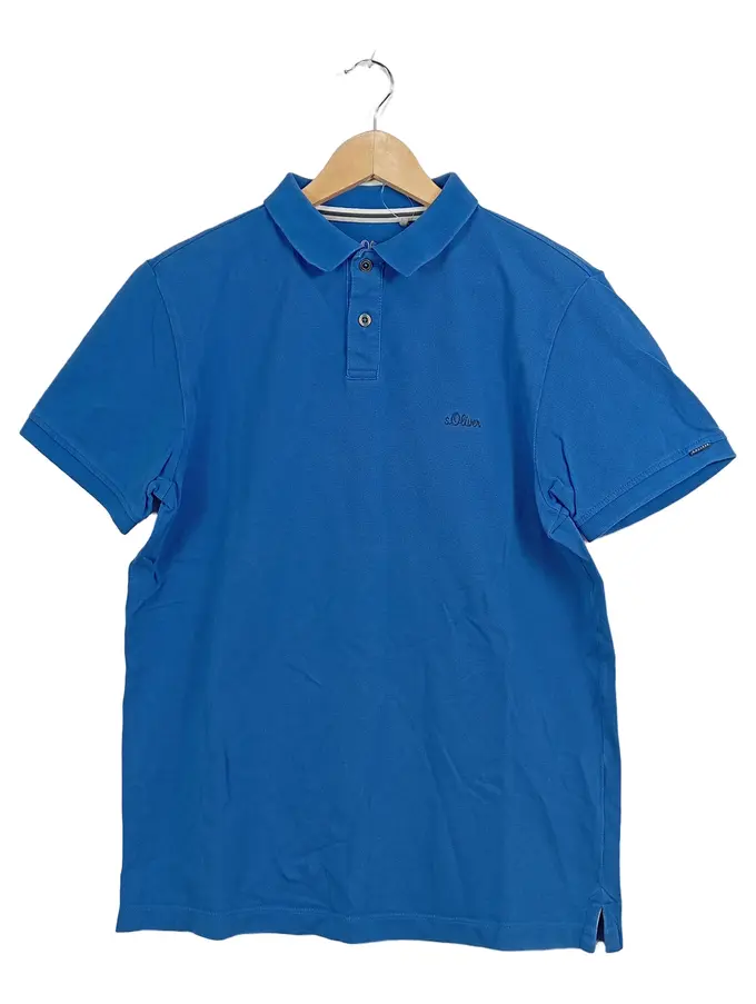 Herren Poloshirt Blau Gr. L Baumwolle Casual Kurzarm