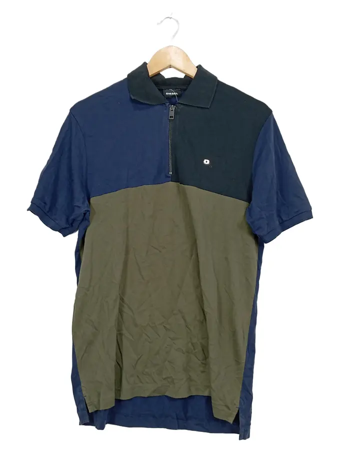 Herren Poloshirt Gr. M Colorblock Navy Oliv Reißverschluss