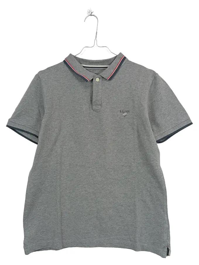 Herren Poloshirt Gr. M Grau Meliert Slim Fit Kurzarm