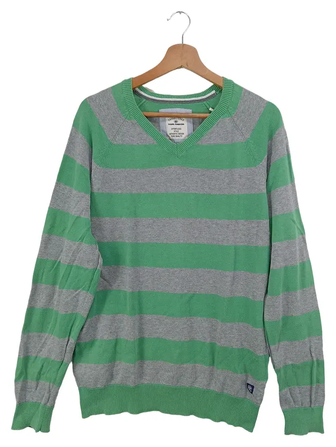 Herren Pullover 50/L Gestreift Grün Grau Mehrfarbig V-Ausschnitt Casual