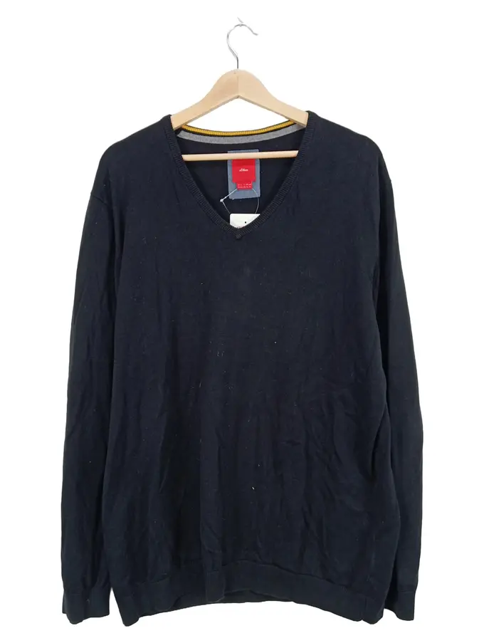 Herren Pullover Basic V-Ausschnitt Uni Baumwolle Schwarz XL