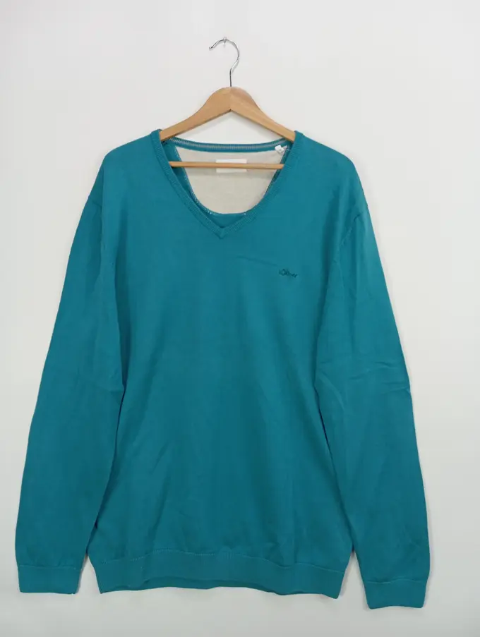 Herren Pullover Gr. 52/XL Blau Casual Baumwolle V-Ausschnitt