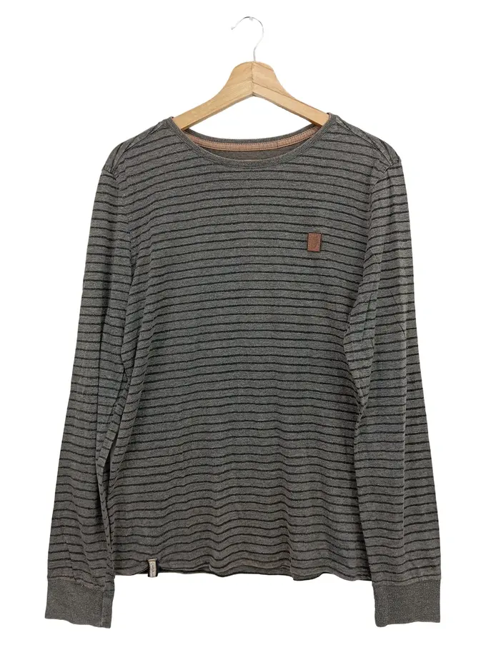 Herren Pullover Grau Gestreift Gr. 46/S Streetwear Casual