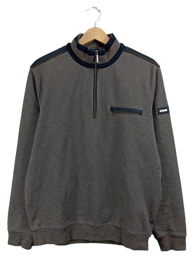 Herren Pullover Half-Zip Sweatshirt Grau Größe L