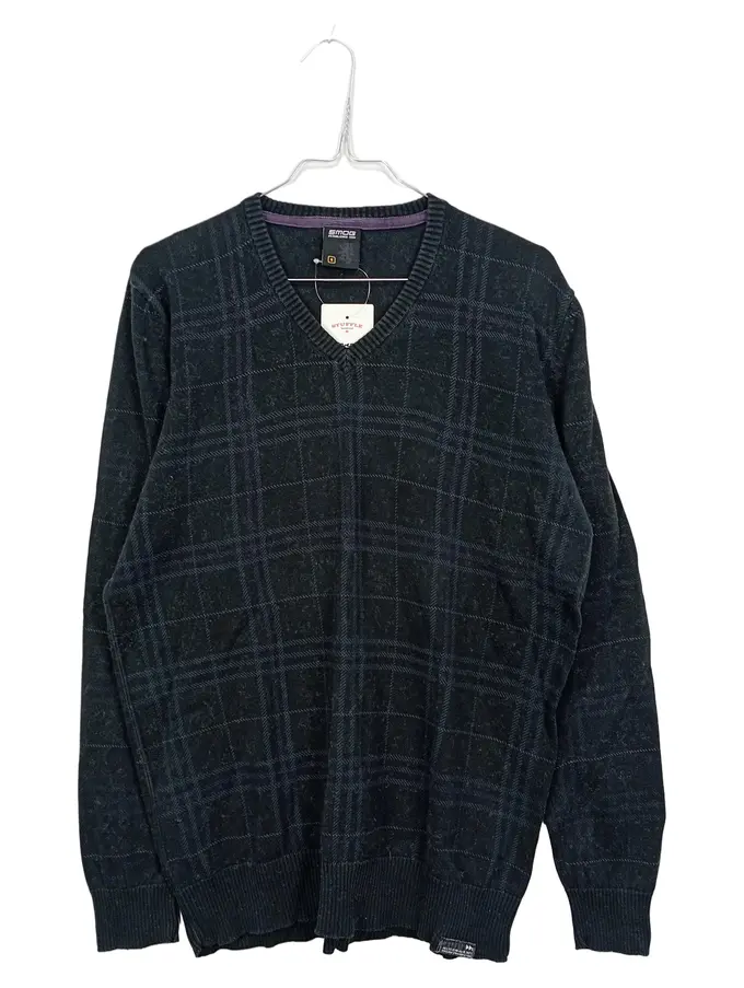 Herren Pullover Kariert Grau V-Ausschnitt Langarm Gr. S