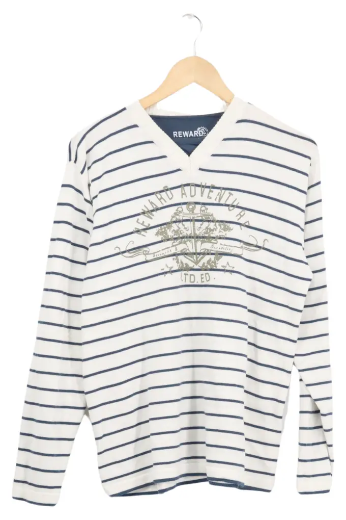 Herren Pullover L gestreift V-Ausschnitt Baumwolle Casual Maritim