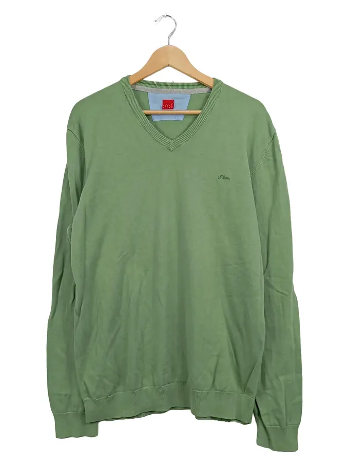 Herren Pullover Langarm Uni Grün Gr. 42 Baumwolle Casual