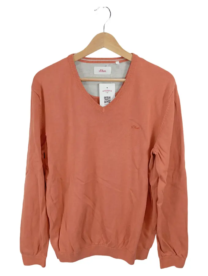 Herren Pullover Langarmshirt V-Ausschnitt Gr. L Orange Baumwolle