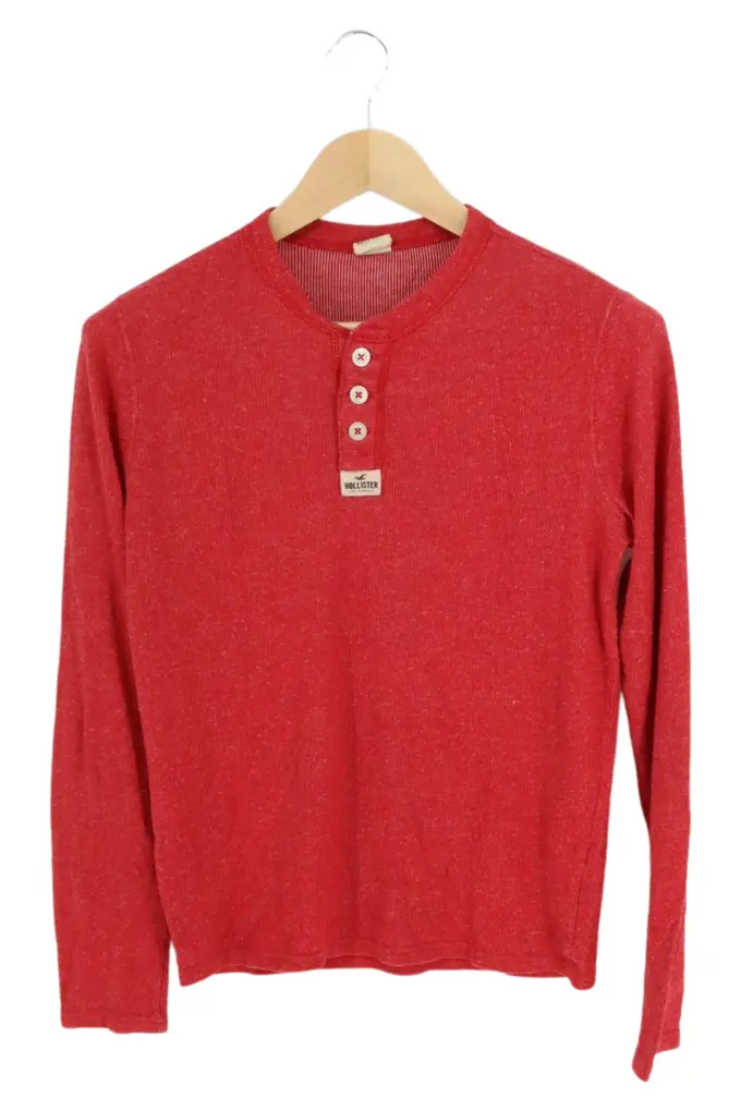 Herren Pullover Rot Gr. S/44 Casual Langarm Henley Rippstrick