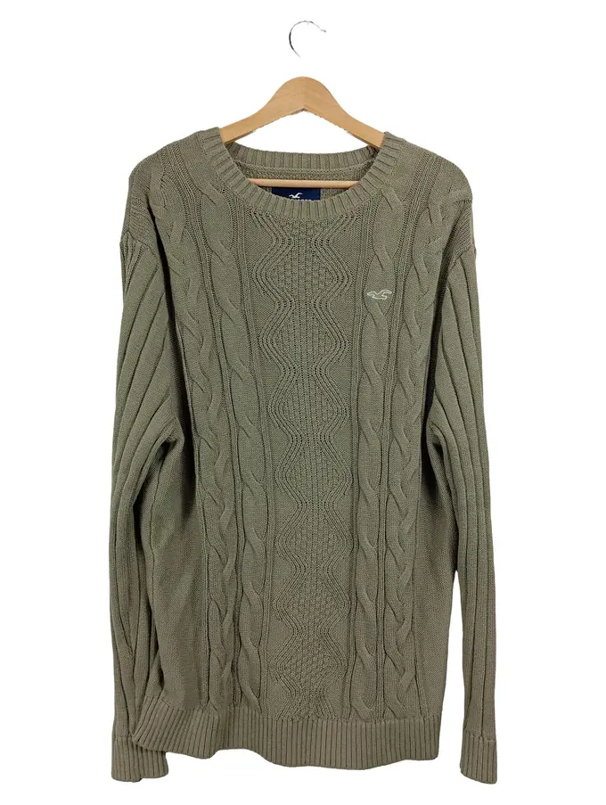 Herren Pullover Strickpullover Zopfmuster Gr. XL Oliv Baumwolle Casual