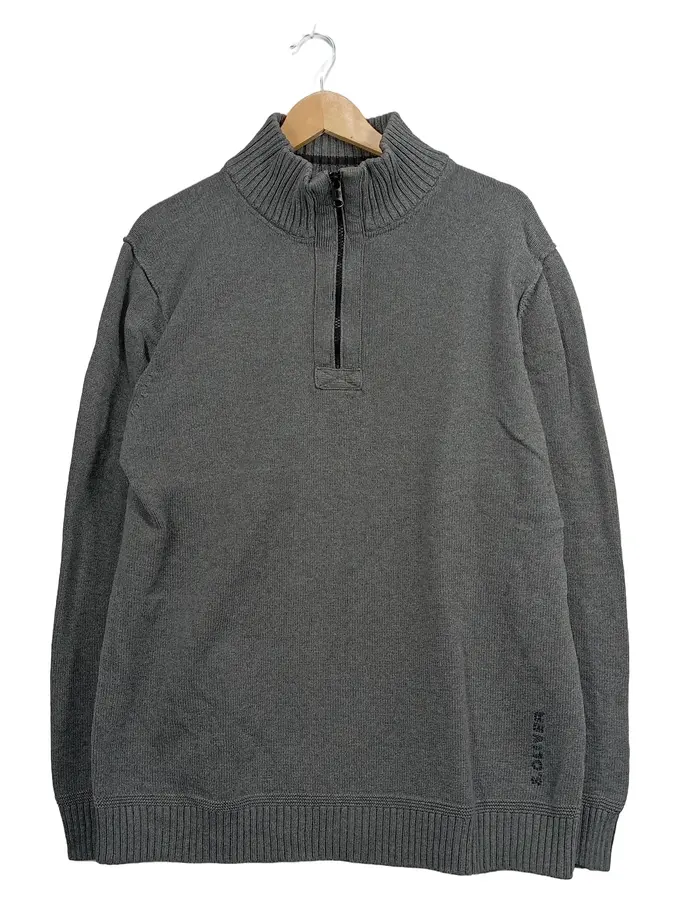 Herren Pullover Troyer Strick Baumwolle Reißverschluss Grau XL