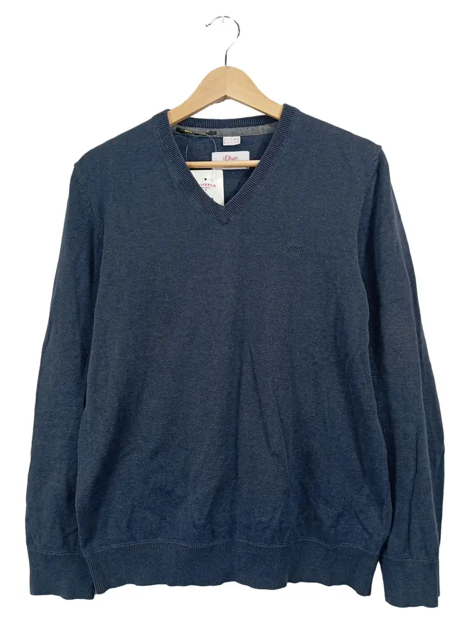 Herren Pullover V-Ausschnitt Blau Gr. M Baumwolle Klassisch