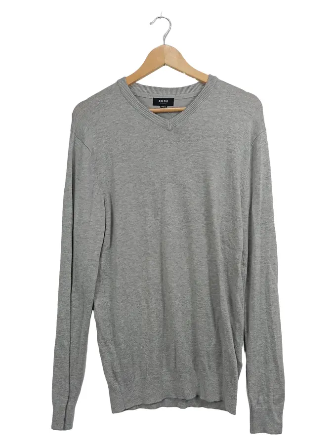 Herren Pullover V-Ausschnitt Langarm Grau Gr. 46/S Casual