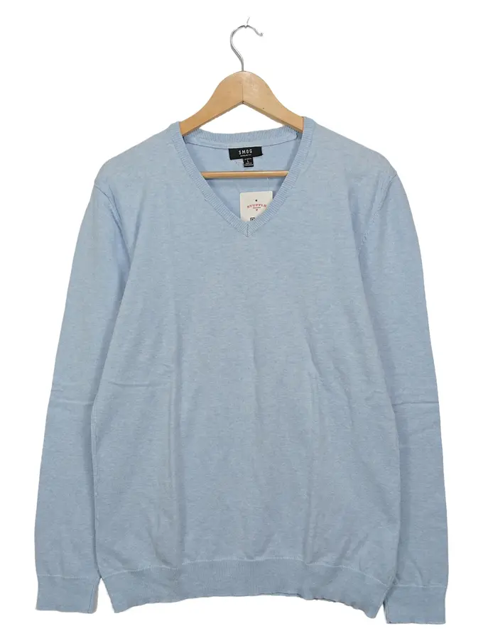 Herren Pullover V-Ausschnitt Meliert Blau Gr. L Baumwolle