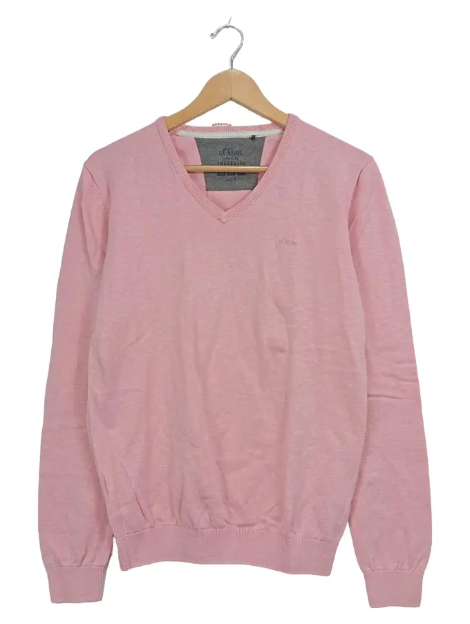 Herren Pullover V-Ausschnitt Rosa Gr. S Baumwolle Basic