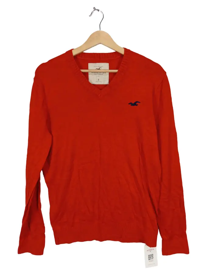 Herren Pullover V-Ausschnitt Rot Gr. S Baumwolle Logo