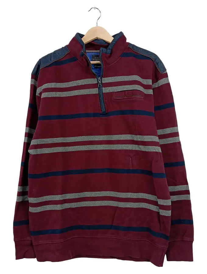 Herren Pullover XL Troyer Bordeaux Gestreift Baumwolle Stehkragen