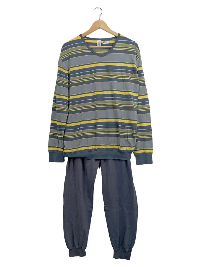 Herren Schlafanzug Set Langarmshirt Hose Gr. 38 Mehrfarbig Gestreift